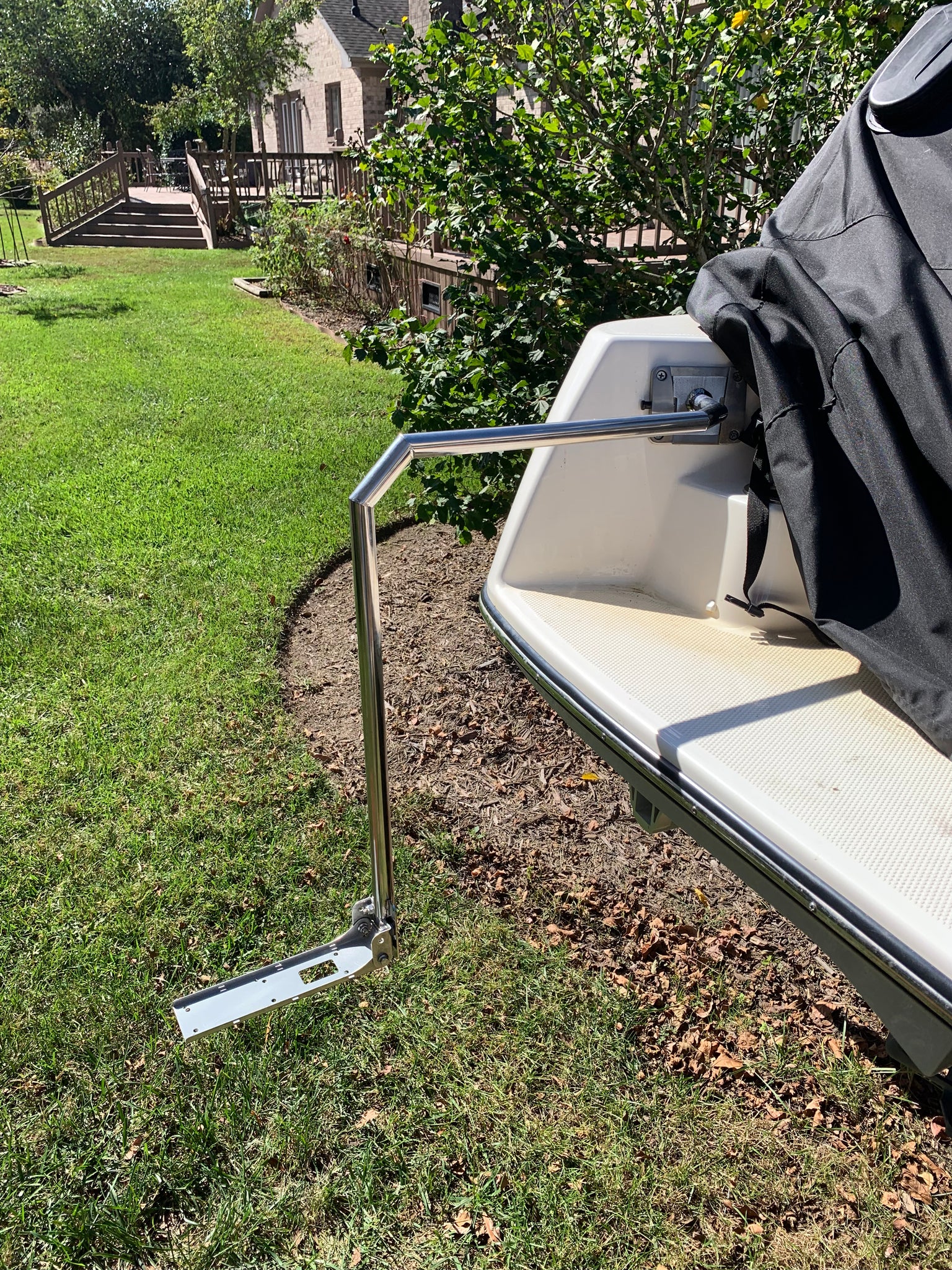 The stanchion has been designed and hand fabricated by myself, in polished stainless steel using 1.0" OD tube and a 3" x 4" x 1/8" stainless steel transducer mounting plate. The stanchion comes off the table mount, turns 90 degrees to the rear for 18" then 15" down. The stanchion is TIG welded by hand and is polished by hand (there may be a few small blemishes) but its a one of a kind. You won't find these anywhere else.